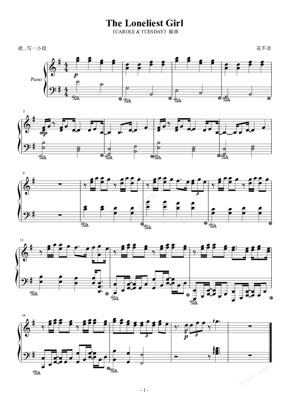 钢琴谱:The Loneliest Girl——《CAROLE & TUESDAY》插曲