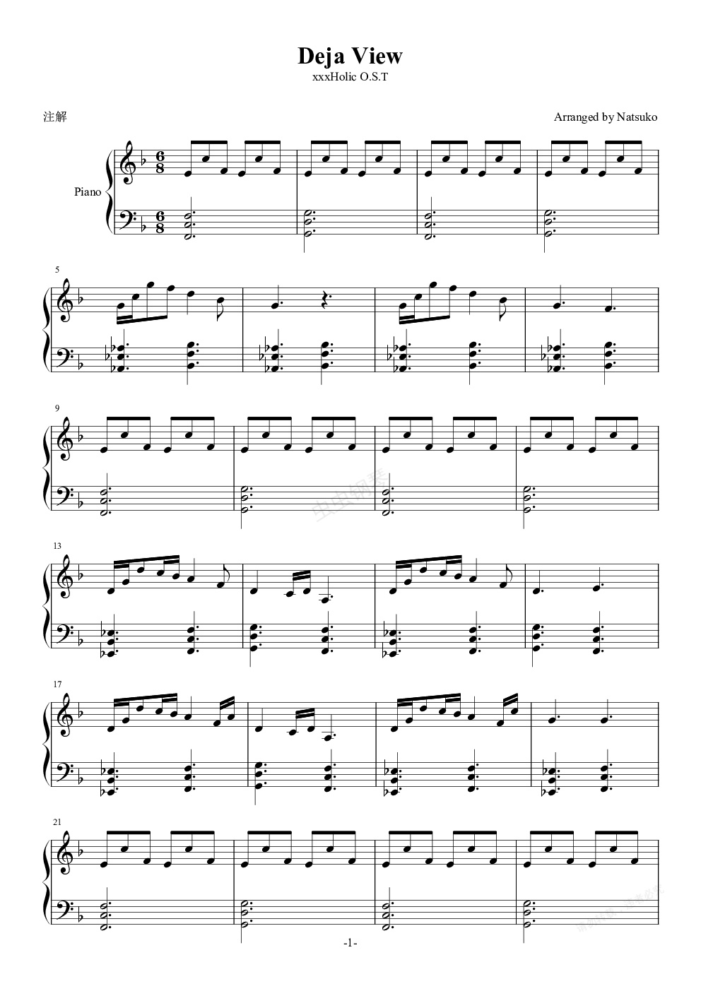 钢琴谱:四月一日灵异事件簿OST-Deja View-xxxHolic-