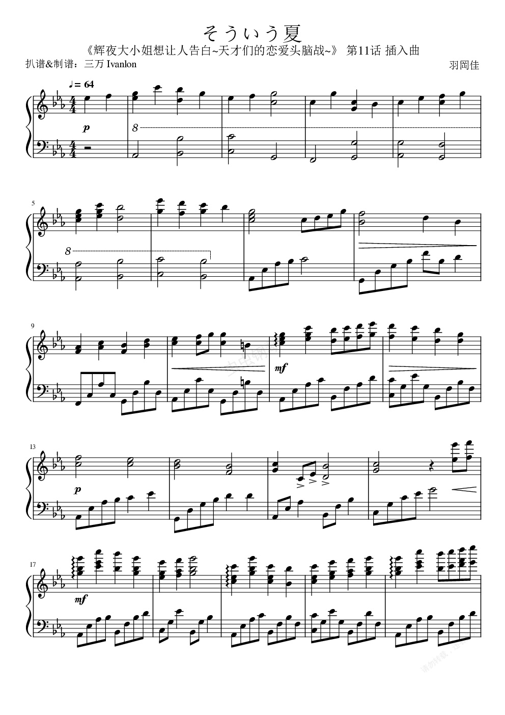 そういう夏 《辉夜大小姐想让我告白》第11话插入曲 OST | Yu Lun演奏版