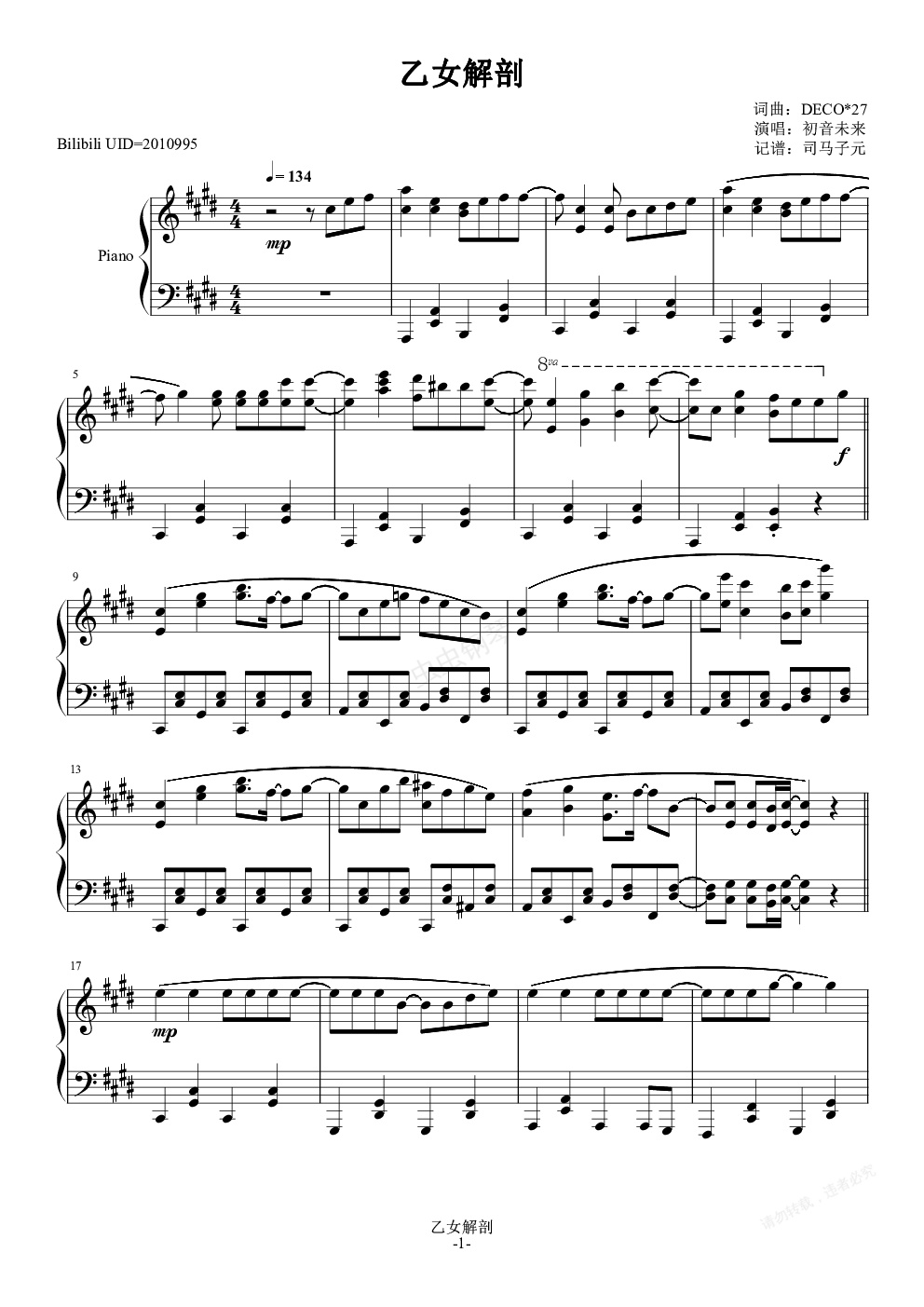 钢琴谱:乙女解剖
