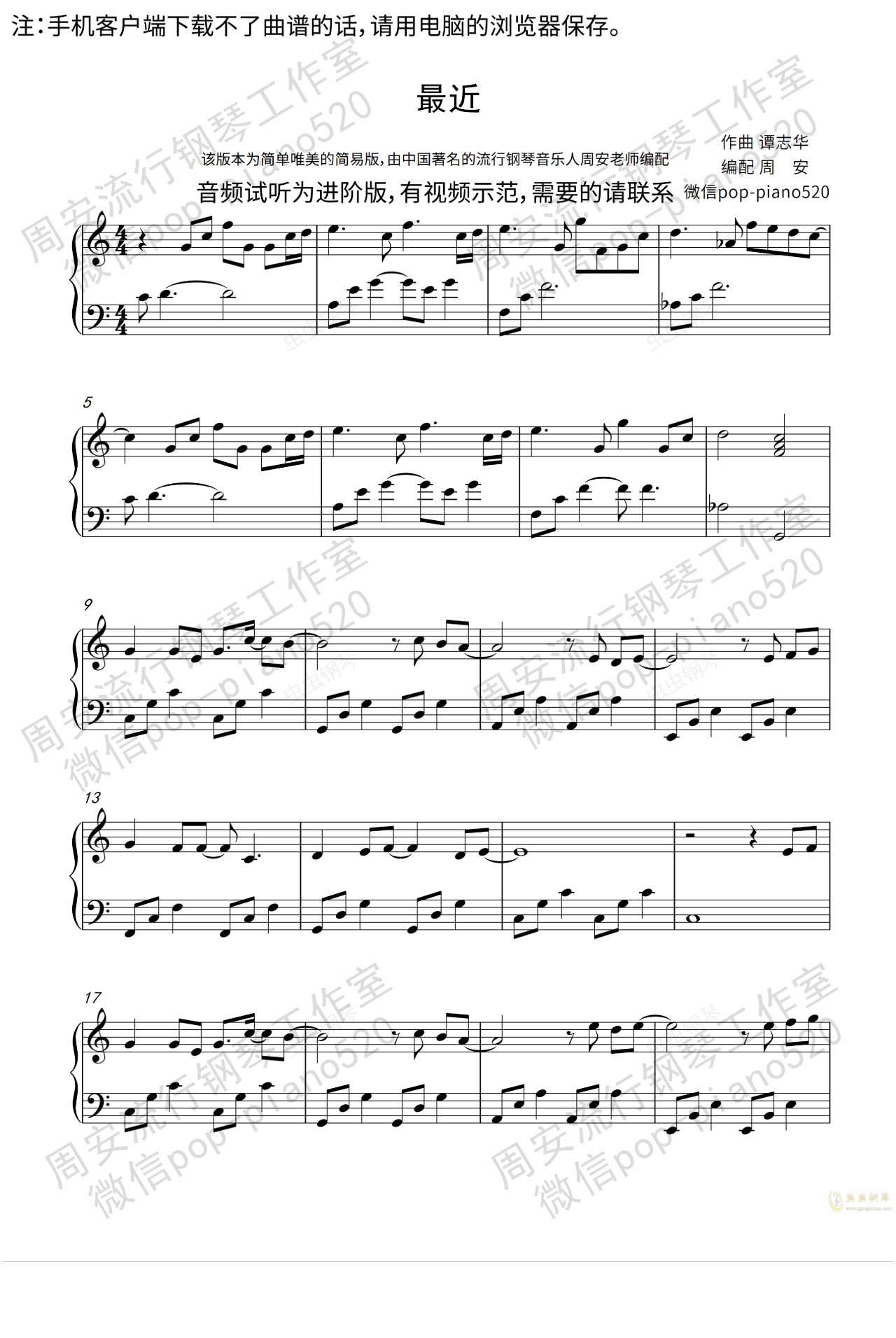 钢琴谱:《最近》唯美钢琴版(周安老师)