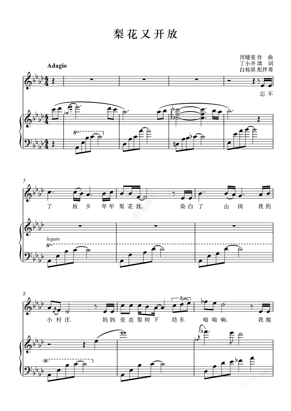 钢琴谱:《梨花又开放》正谱