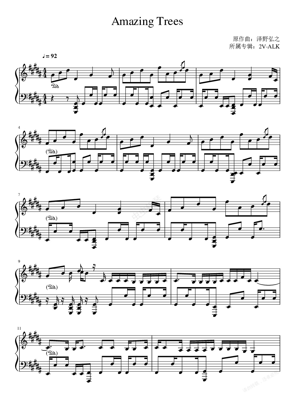 钢琴谱:Amazing Trees 泽野弘之【超燃!!】