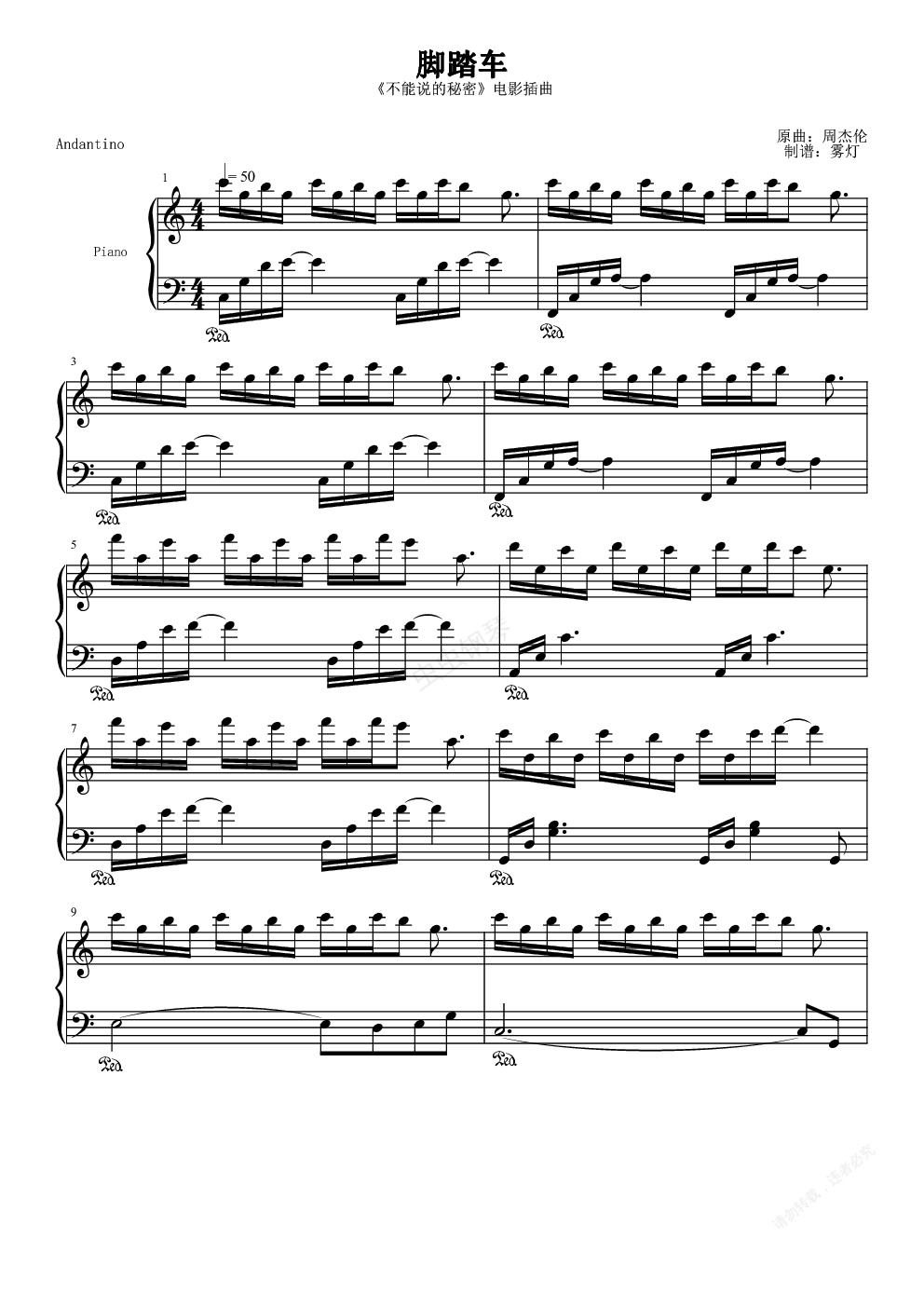 钢琴谱:脚踏车(《不能说的秘密》电影插曲)