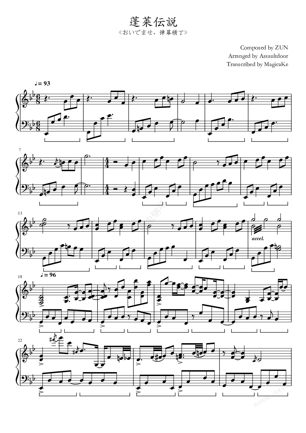 钢琴谱:【Assaultdoor】蓬莱伝説