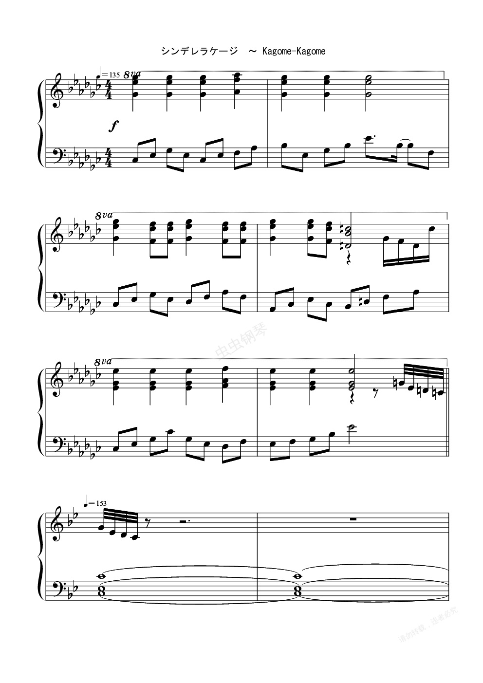 钢琴谱:【东方永夜抄】灰姑娘的笼子 ~ Kagome-Kagome