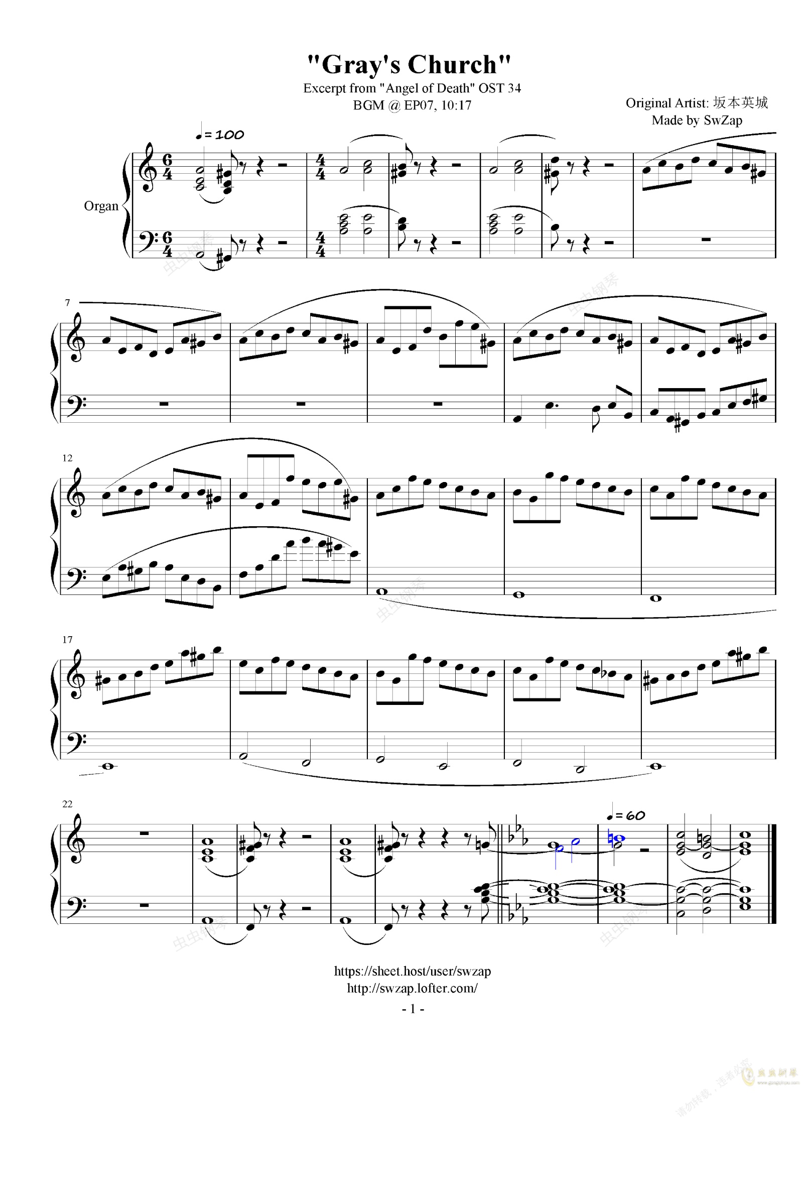 钢琴谱:"Gray's Church"(《杀戮的天使》OST 34)片段