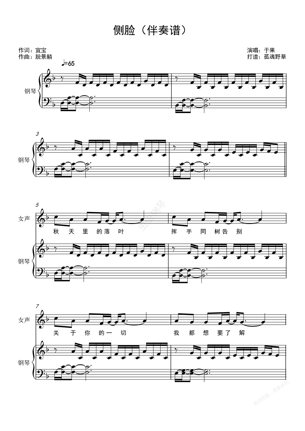 侧脸(伴奏)钢琴+鼓