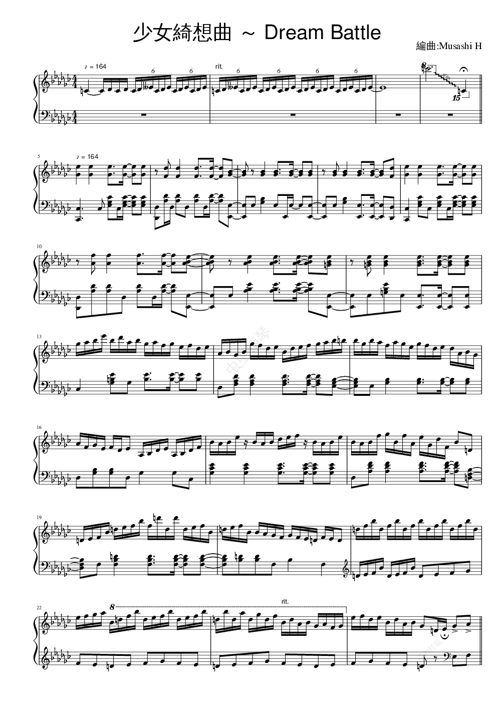 钢琴谱:【东方永夜抄】少女绮想曲 ~ Dream Battle