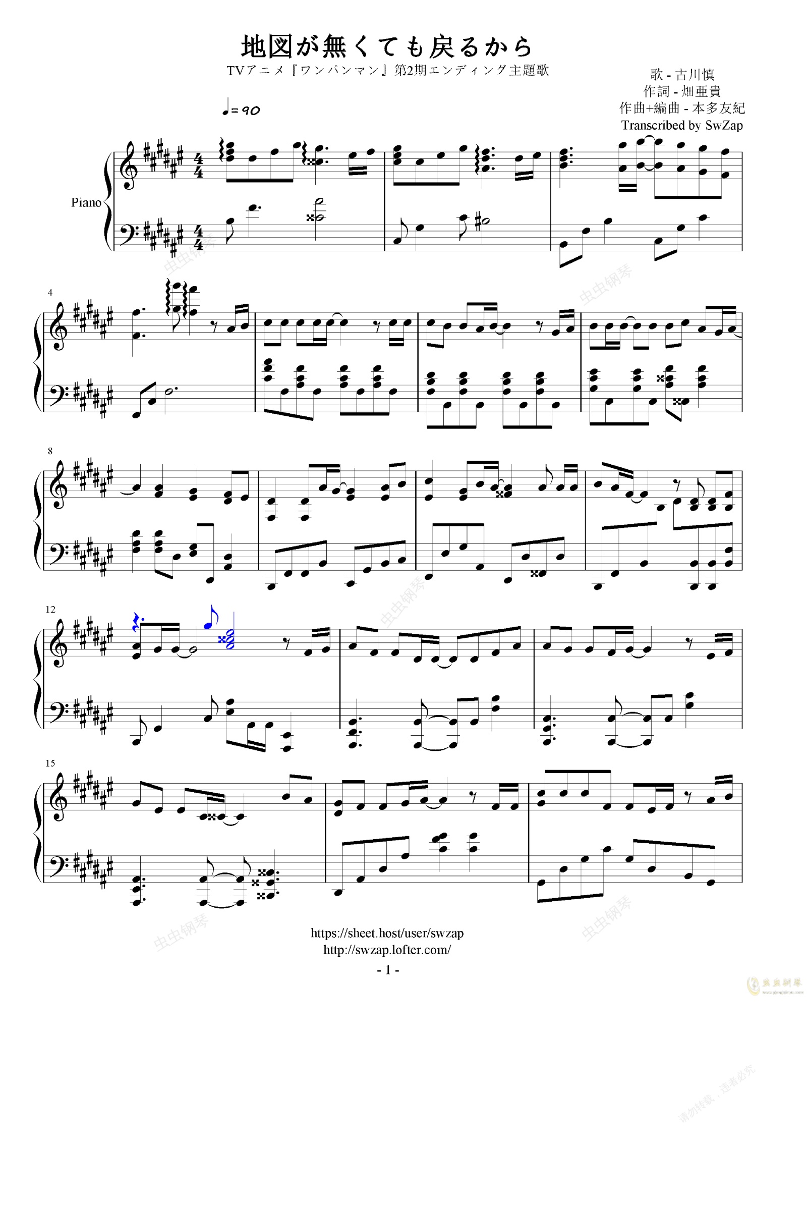 钢琴谱:地図が無くても戻るから(《一拳超人》第二季ED)