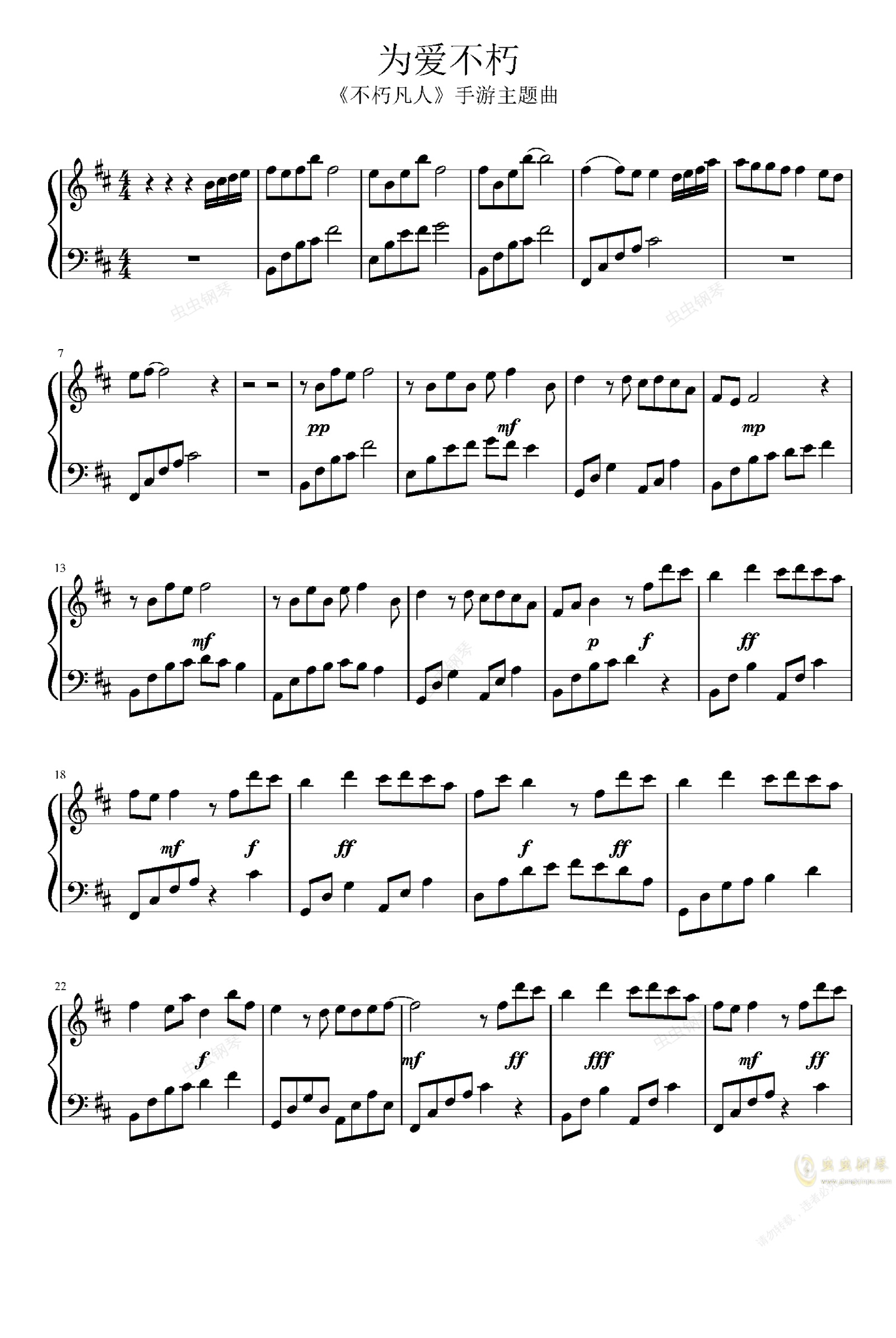 钢琴谱:为爱不朽---《不朽凡人》游戏主题曲