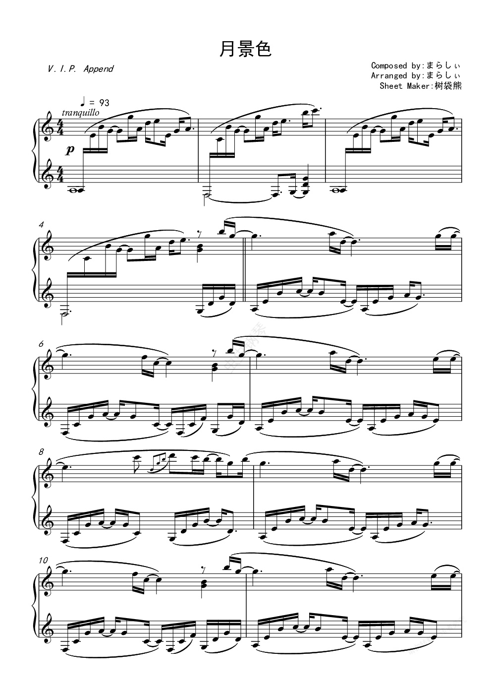 钢琴谱:【触手猴】【VOCALOID】月景色