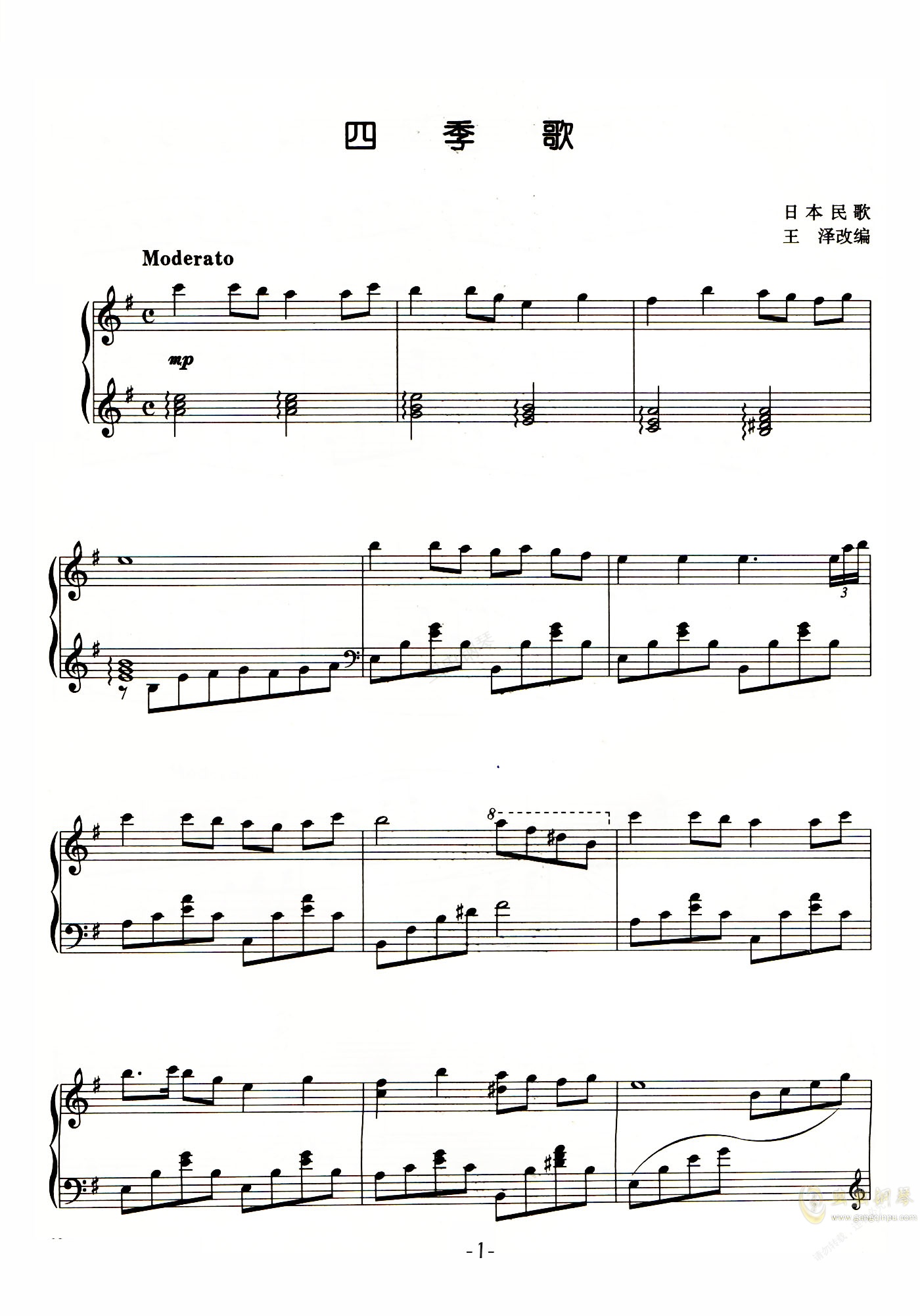 钢琴谱:四季歌(经典版)