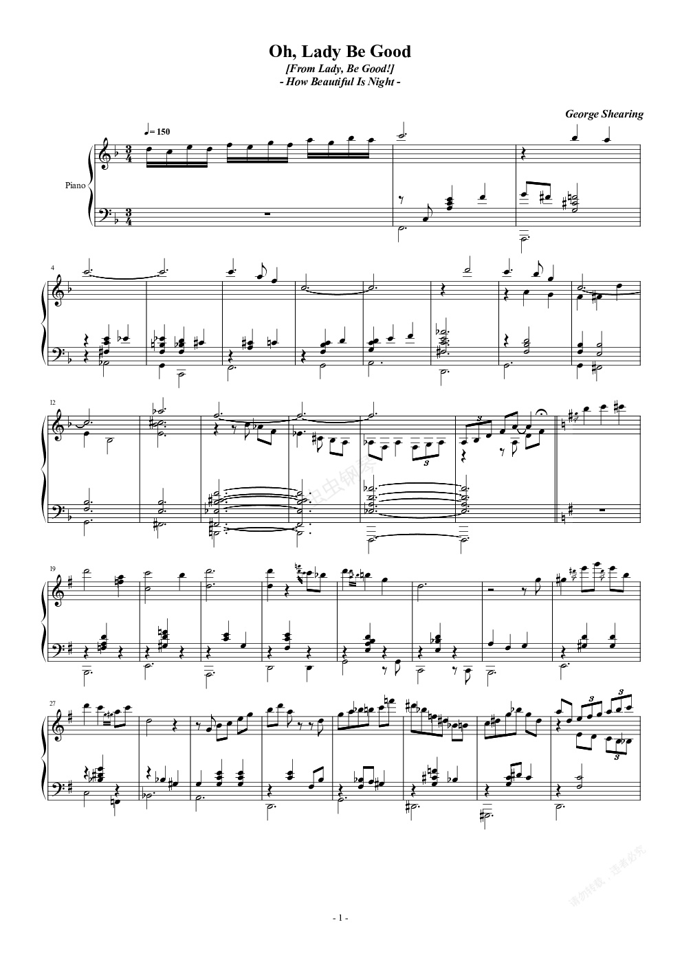 钢琴谱:Oh, Lady Be Good