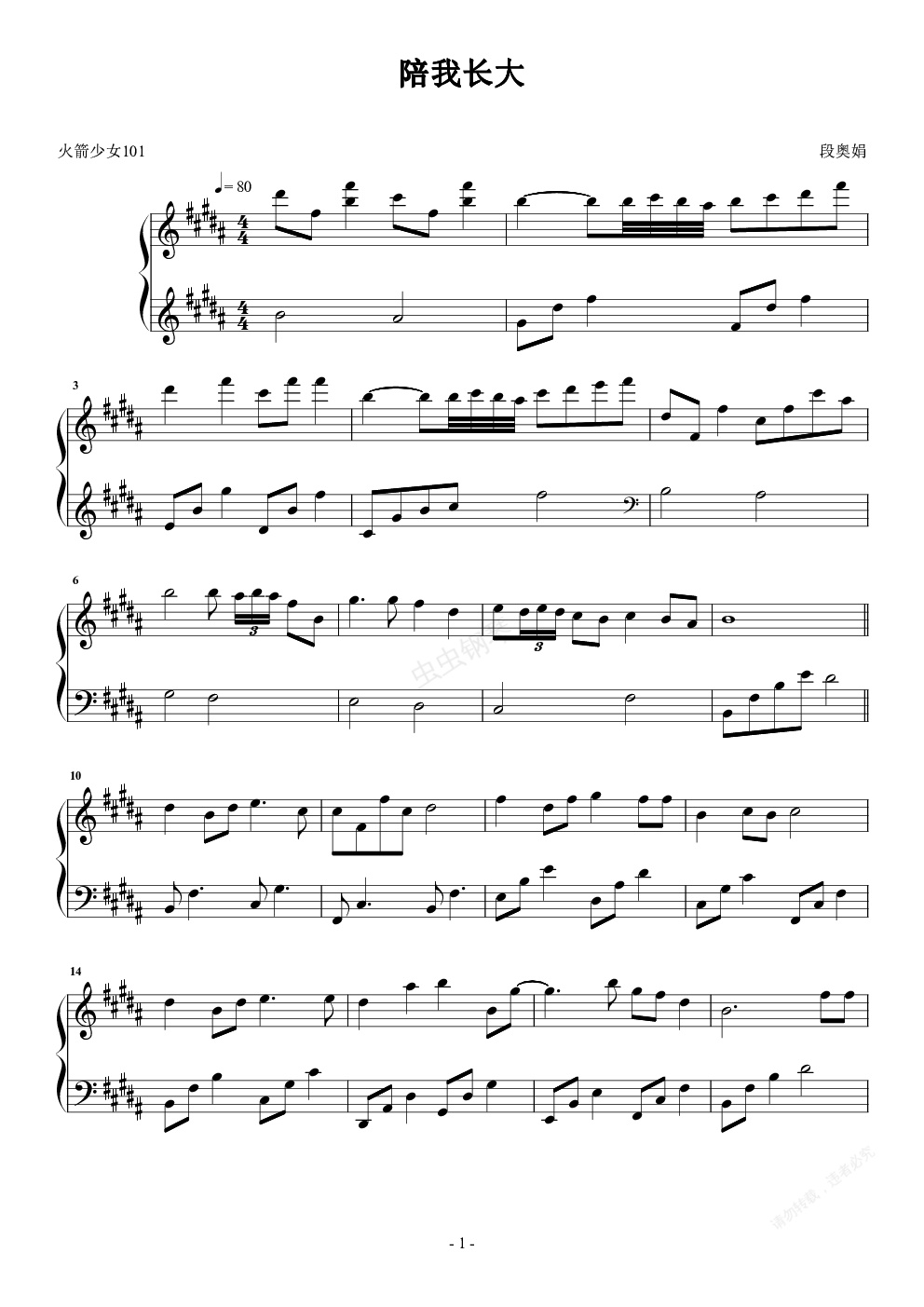 钢琴谱:陪我长大 段奥娟