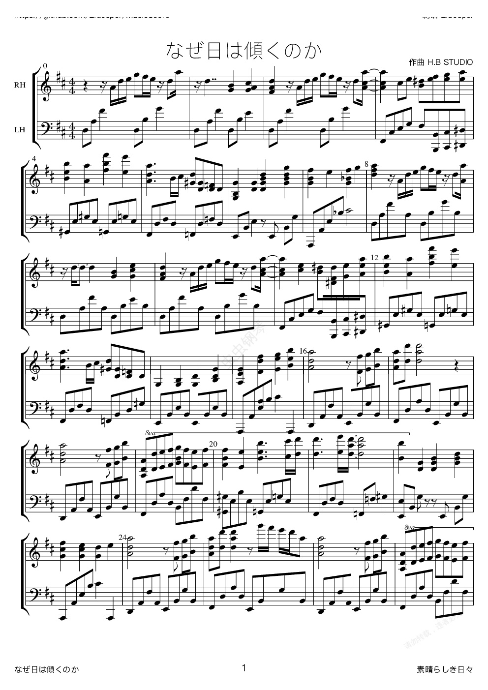 钢琴谱:なぜ日は傾くのか