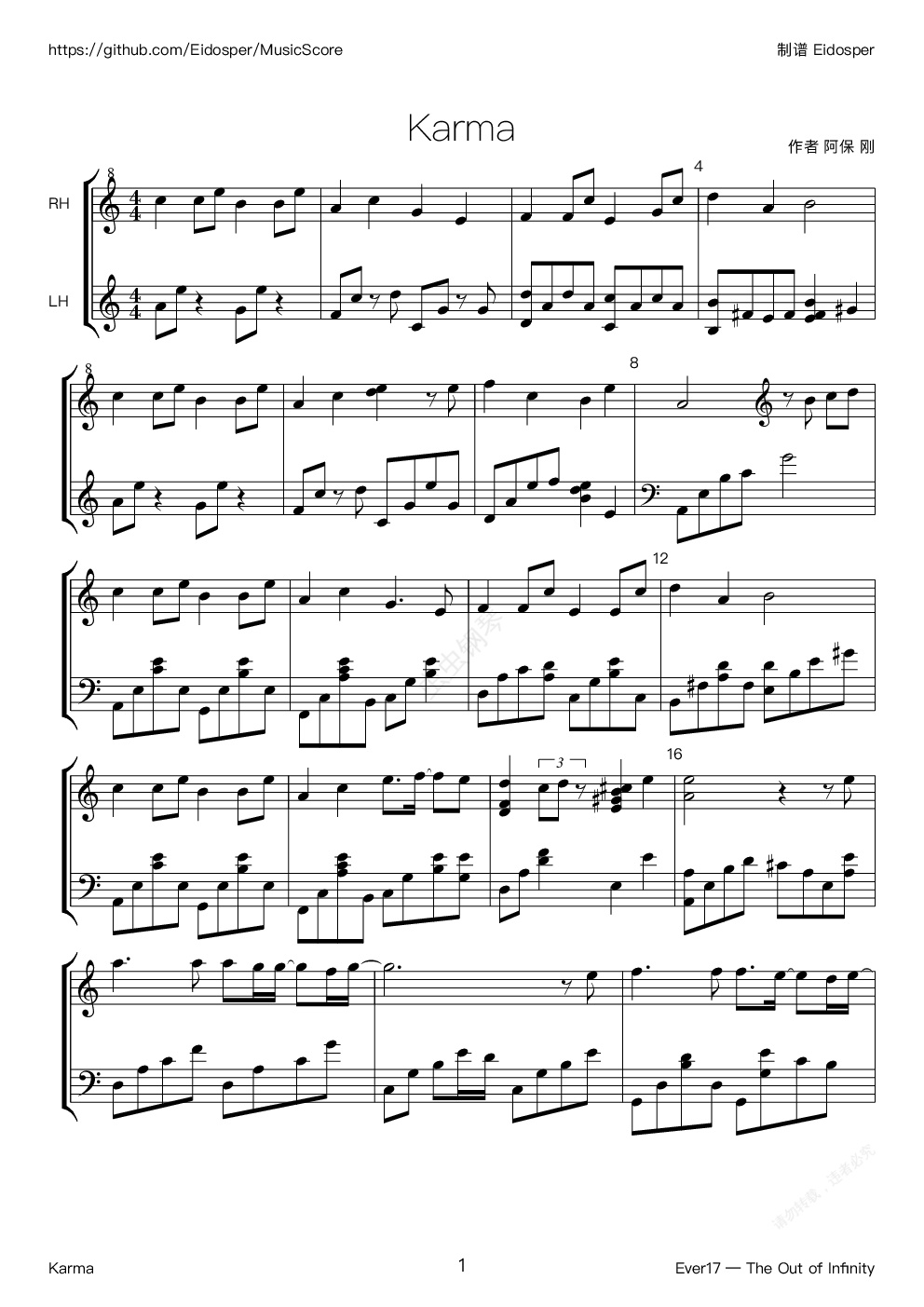 钢琴谱:Karma