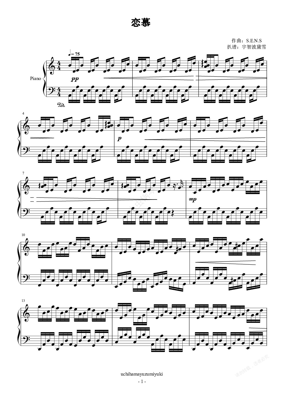 钢琴谱:s.e.n.s - 恋慕[源氏物语千年纪]