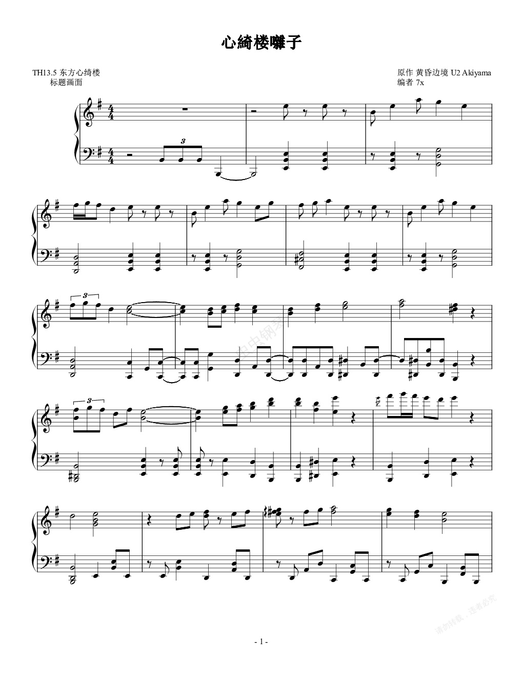 钢琴谱:【东方心绮楼】心綺楼囃子 (心绮楼囃子)