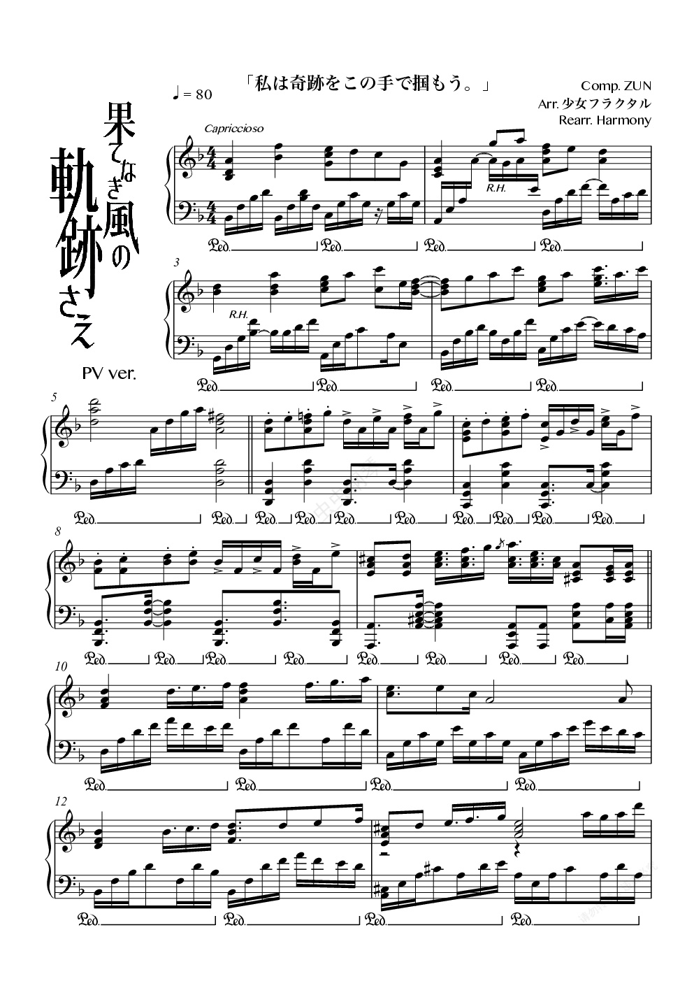 钢琴谱:【东方Arrange】【少女分形】果てなき風の軌跡さえ(无尽的风之轨迹)PV版 原曲:信仰は儚き人間の為に/信