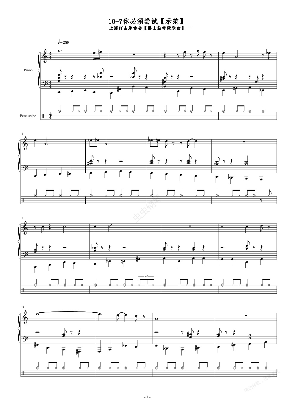 钢琴谱:爵士鼓考级乐曲 10-7你必须尝试【示范】