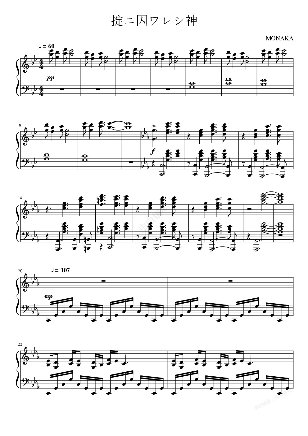 钢琴谱:【尼尔:伪装者】掟ニ囚ワレシ神