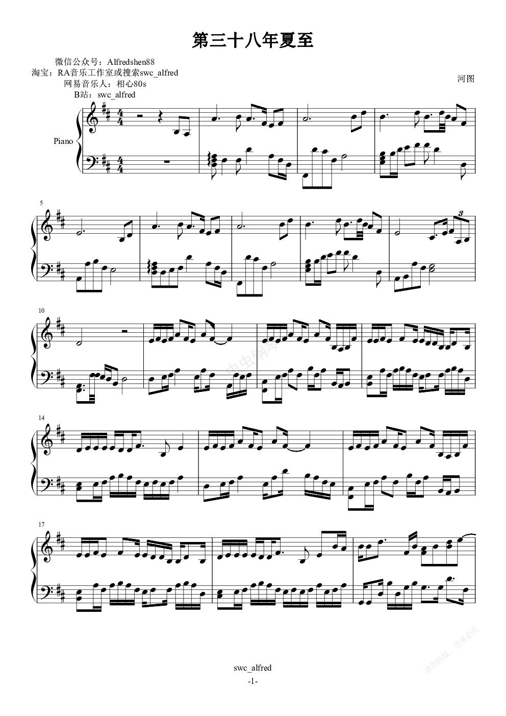 钢琴谱:第三十八年夏至