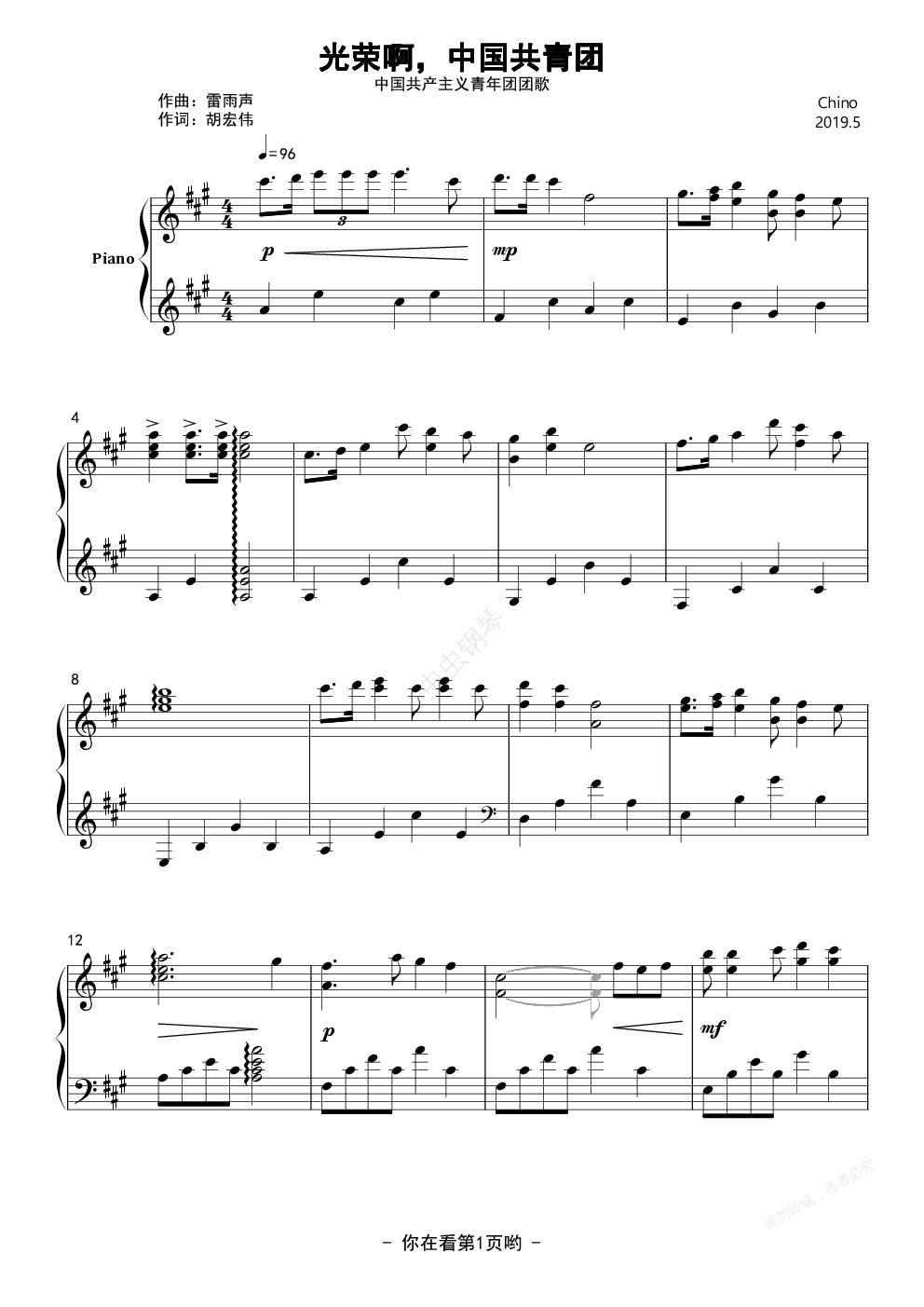 [IMG]/pu/2019/7/2/__7581_12301_[/IMG]1988年5月,在中国共产主义青年团第十二次全国代表大会上,经与会代表投票表决,《光荣啊,中国共青团》被最终确定为中国共产主义青年团代团歌。在中国共产主义青年团第十三次代表大会上通过决议。2003年7月22日,中国共产主义青年团第十五次全国代表大会通过了关于《中国共产主义青年团章程(修正案)》的决议,将《光荣啊,中国共青团》确定为中国共产主义青年团团歌。——————————————————今年素五四运动一百周年,窝利用五一假期,改编了这首中国共产主义青年团团歌《光荣啊,中国共青团》。希望大家喜欢这次的作品~