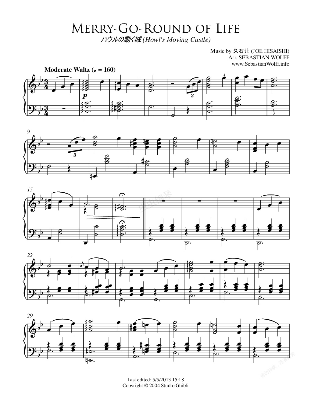 钢琴谱:人生的旋转木马-哈尔的移动城堡