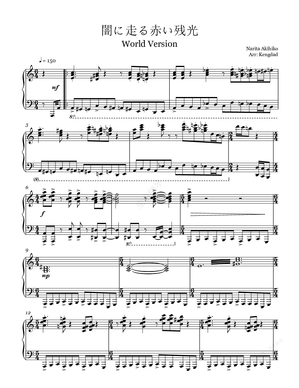 钢琴谱:怪物猎人世界-闇に走る赤い残光