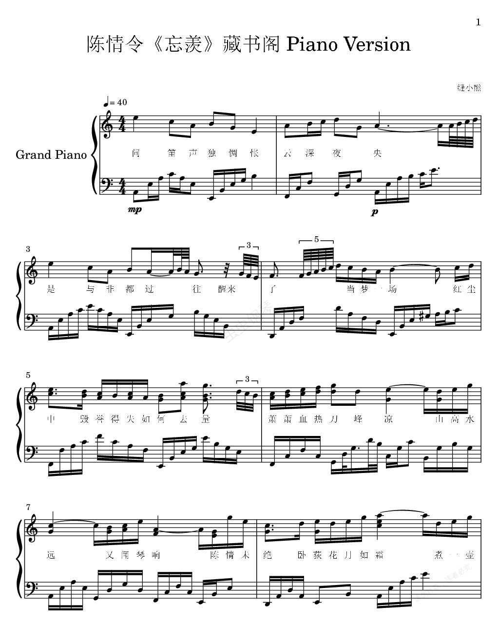 钢琴谱:陈情令《忘羡》藏书阁纯钢琴版插曲