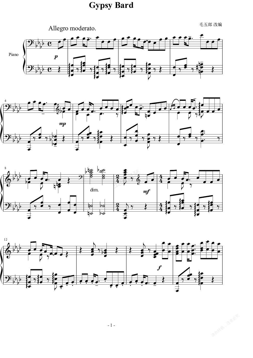 钢琴谱:Gypsy Bard 改编钢琴独奏