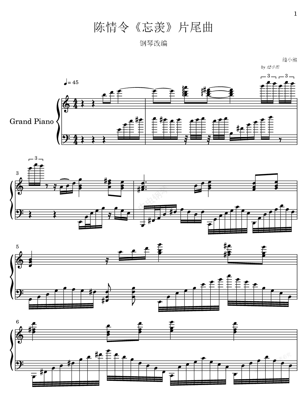钢琴谱:陈情令《忘羡》片尾曲钢琴改编版