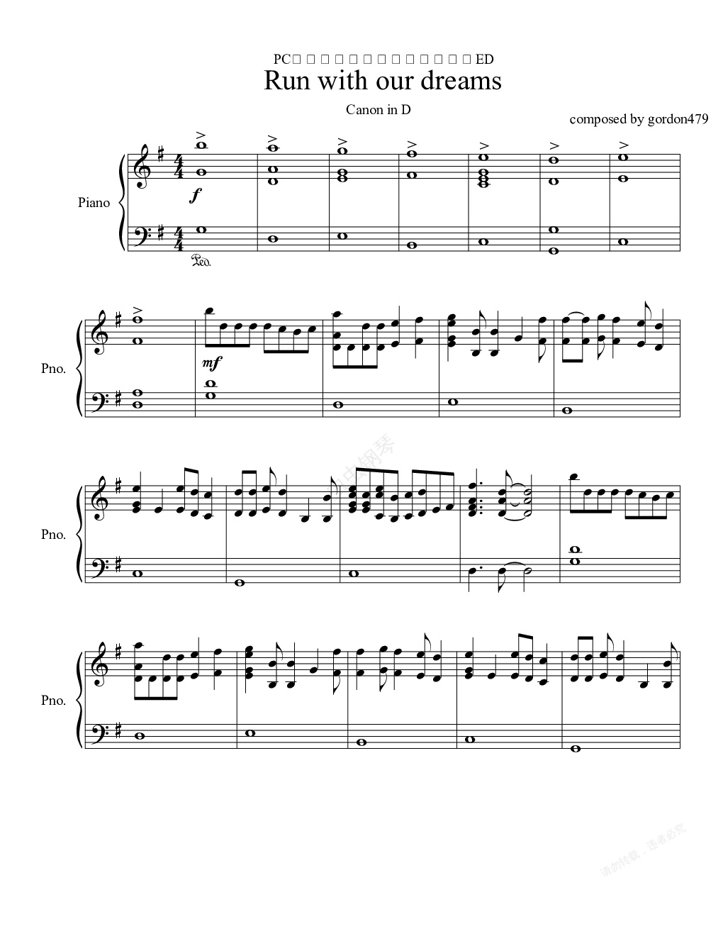 钢琴谱:【Canon in G】Run with our dreams(随梦奔跑)