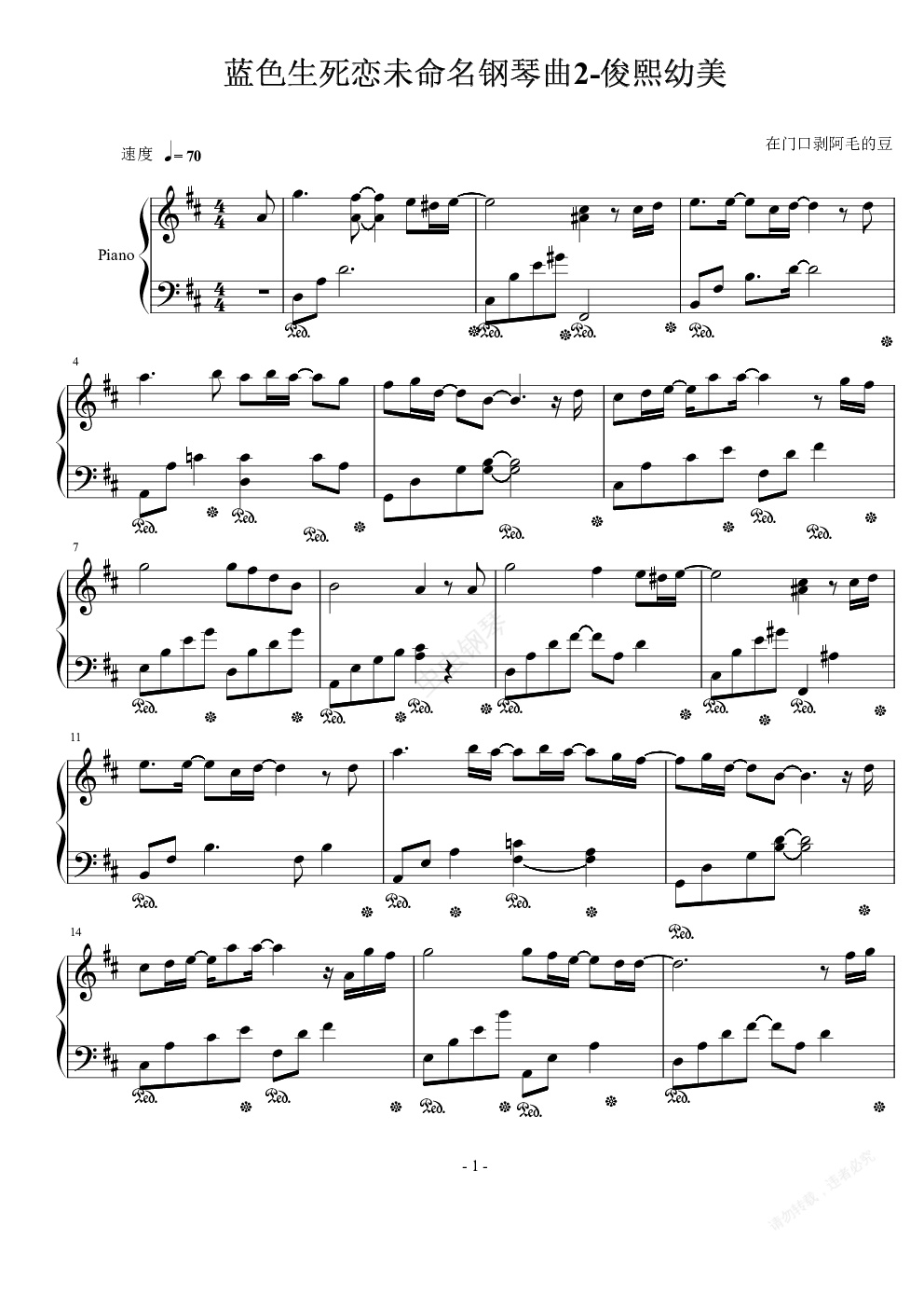 钢琴谱:蓝色生死恋未命名钢琴曲2-俊熙幼美