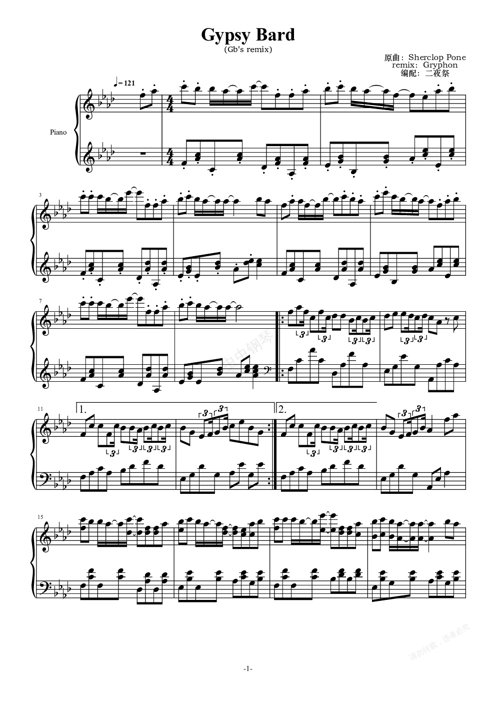 钢琴谱:【友谊是巫术】Gypsy Bard (Gb's Remix)