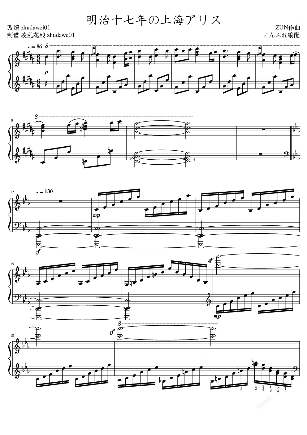 钢琴谱:【东方】明治十七年の上海アリス 明治十七年的上海爱丽丝