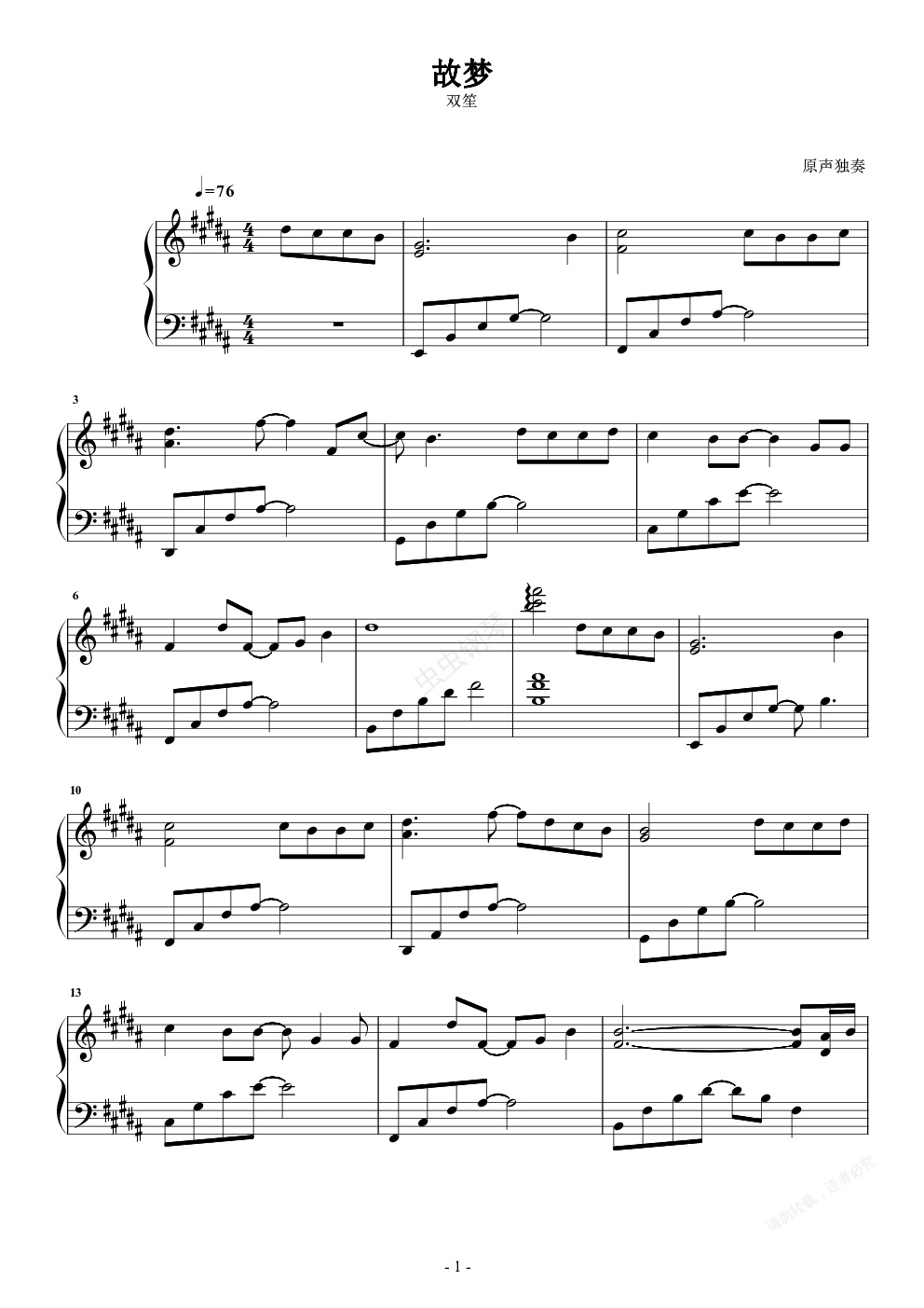 钢琴谱:故梦 原声独奏