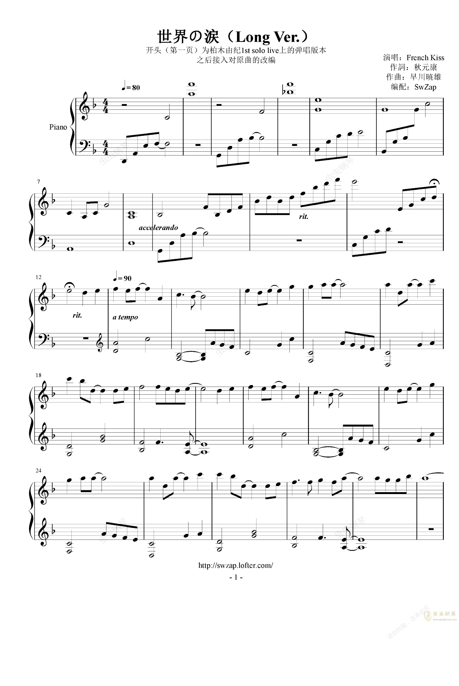 钢琴谱:フレンチ·キス - 世界の涙(Long Ver.)