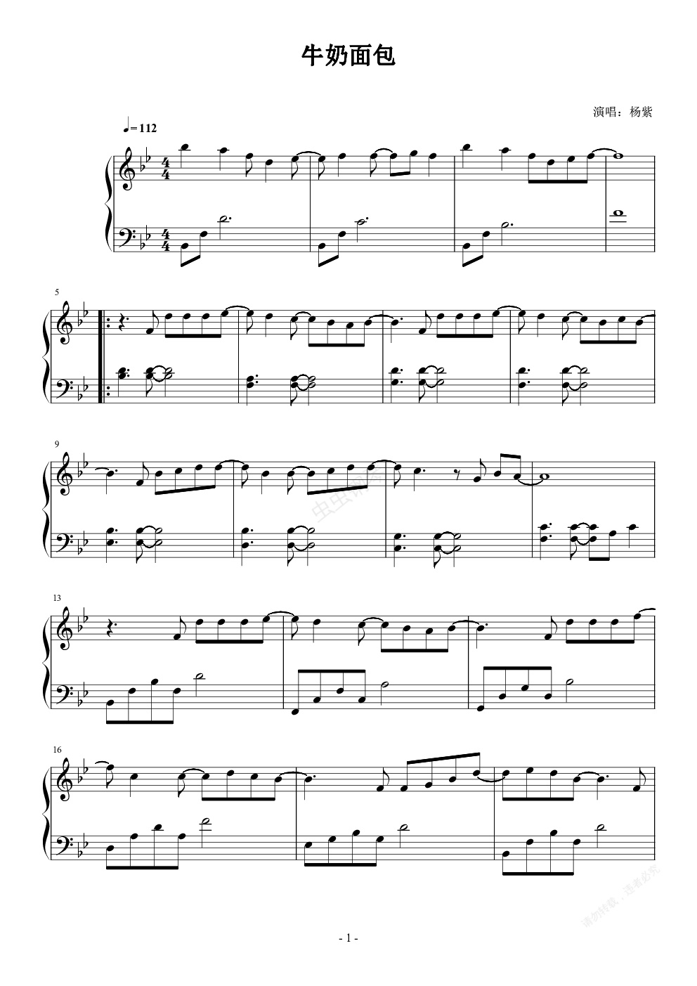 钢琴谱:牛奶面包