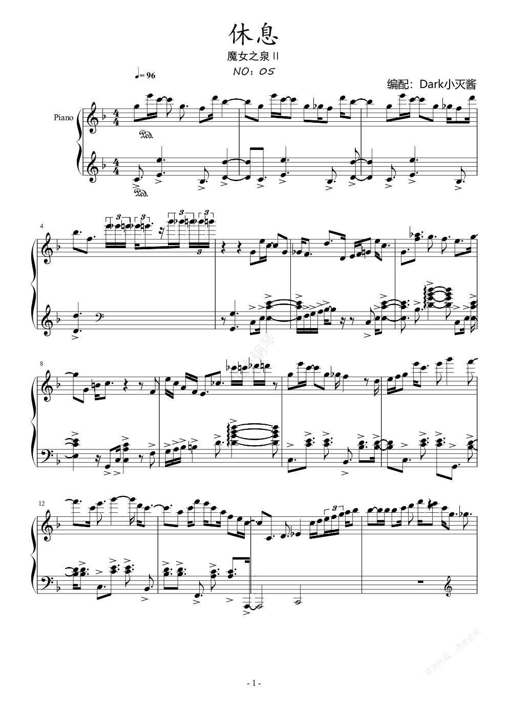 钢琴谱:【魔女之泉Ⅱ】休息