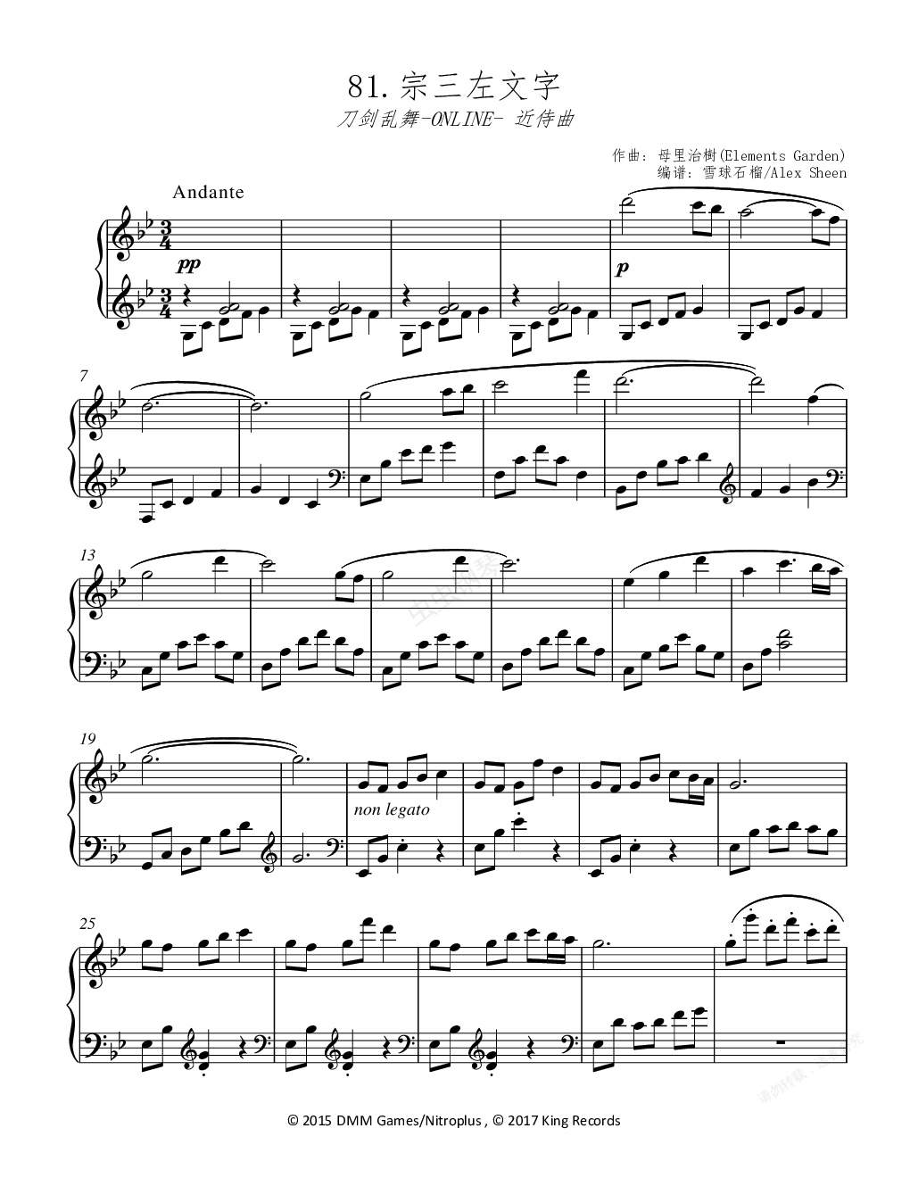 钢琴谱:宗三左文字 近侍曲 【刀剑乱舞】(简易版)