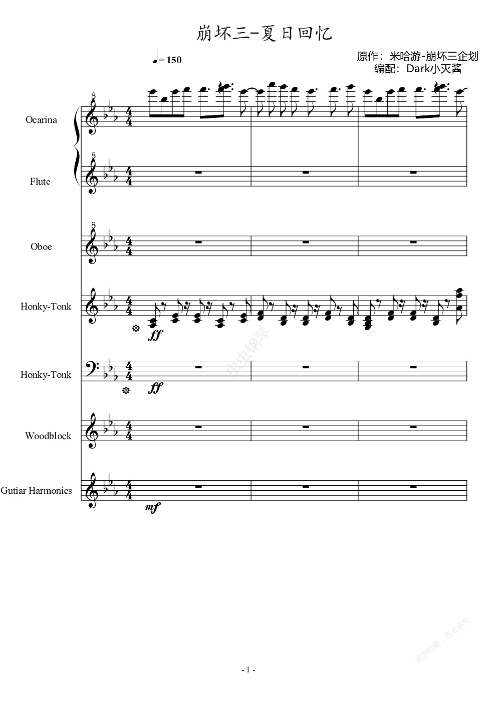 钢琴谱:崩坏三-夏日回忆