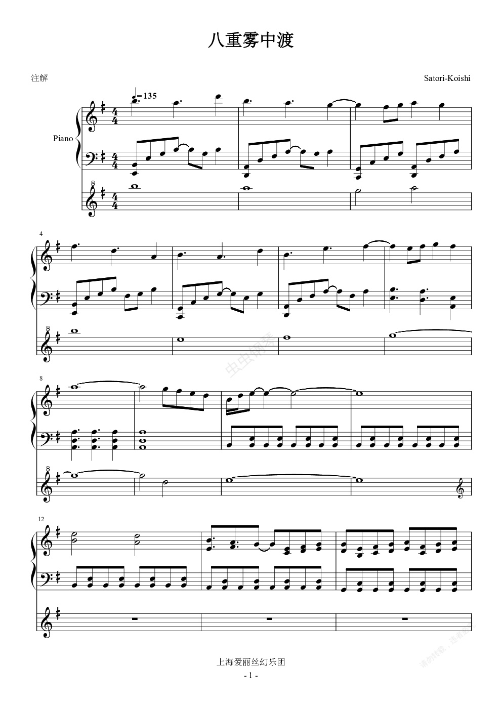 钢琴谱:东方project-八重雾中渡(原曲:彼岸归航)
