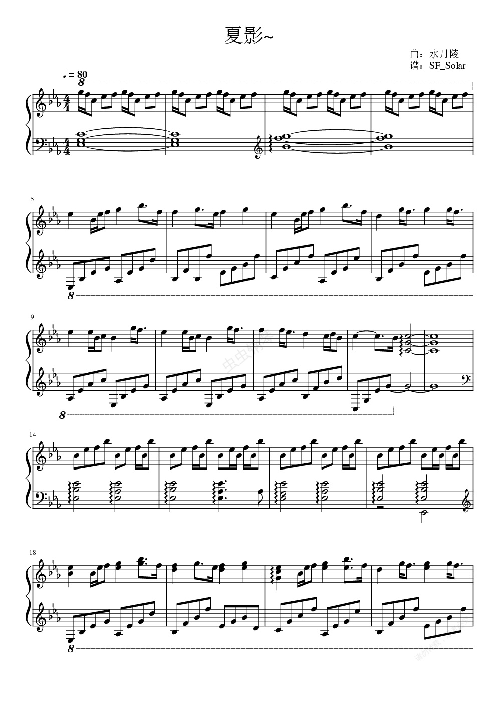 [青空,夏影,阳炎,花火~] 其实在学校的时候,就想着暑假一定要多弄些新作品来,但等放假后,忙着旅游和补寒蝉,就逐渐忘记了这事,后来慢慢记起来了,勉强克服了下懒癌,把这首歌的谱子弄出来了。 我没看过air,只是在日推里单纯觉得很好听,便拿来做练习了。 但本人技术十分有限,能做成这样已经算是毕生所学了,听完之后再听原曲,一个地下一个天上,估计很可能会成为以后的黑历史吧2333。 试听用FL制作的,主要是嫌的音源太难听了,就想稍微提升下品质,本来还可以增加更多细节的,但懒癌发作,就勉强弄成这样吧~
