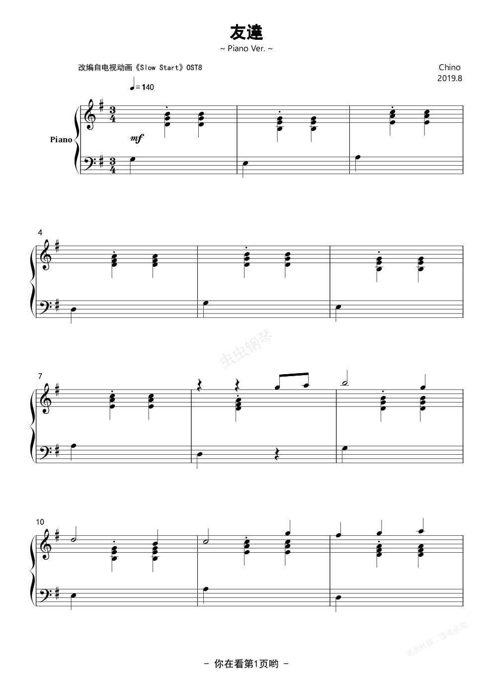 钢琴谱:友達 ~ Piano Ver. ~
