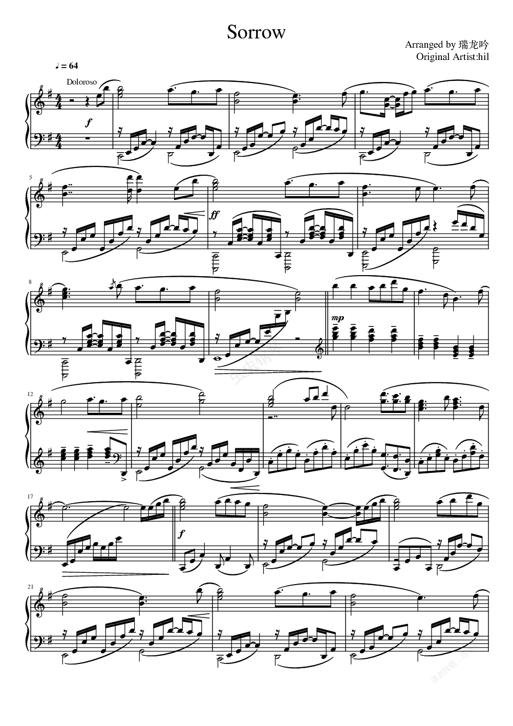 钢琴谱:fate stay night游戏经典ost Sorrow