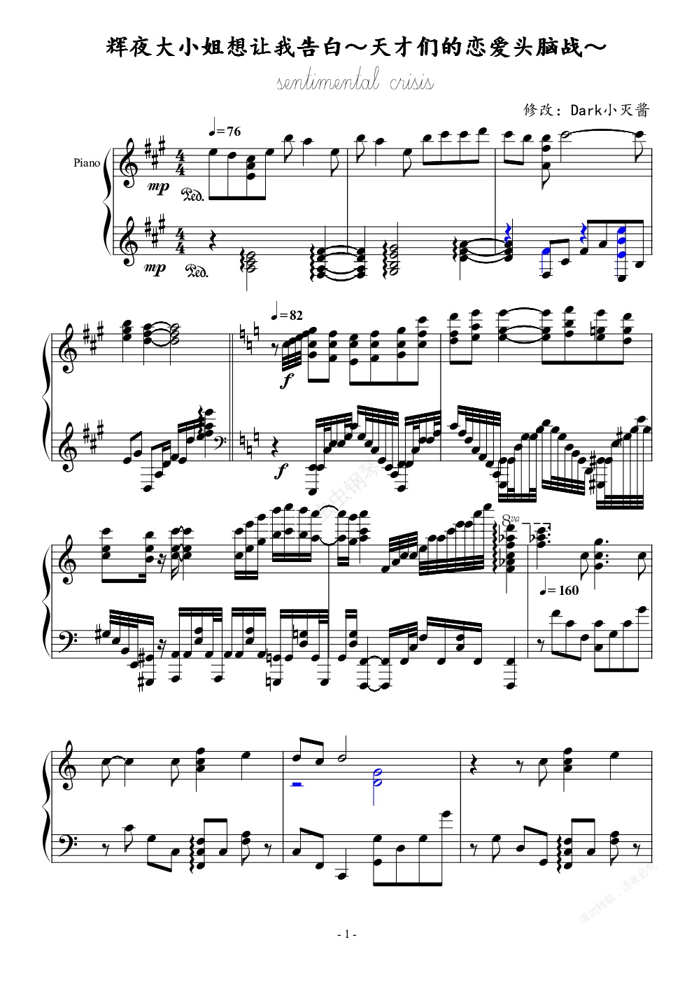 钢琴谱:sentimental crisis【辉夜大小姐想让我告白】ED