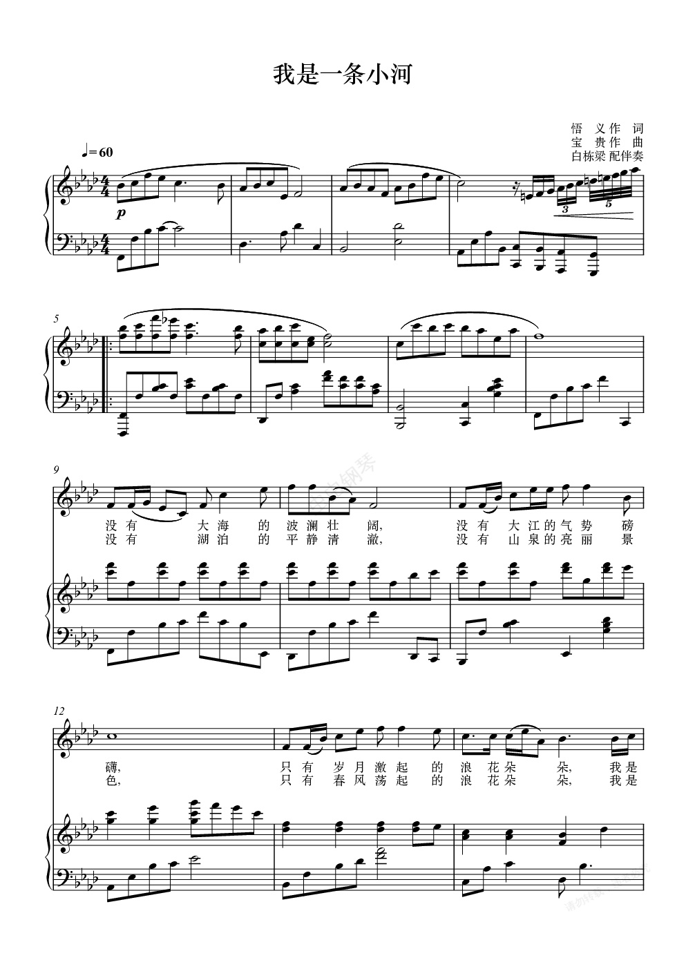 钢琴谱:《我是一条小河》钢琴伴奏谱
