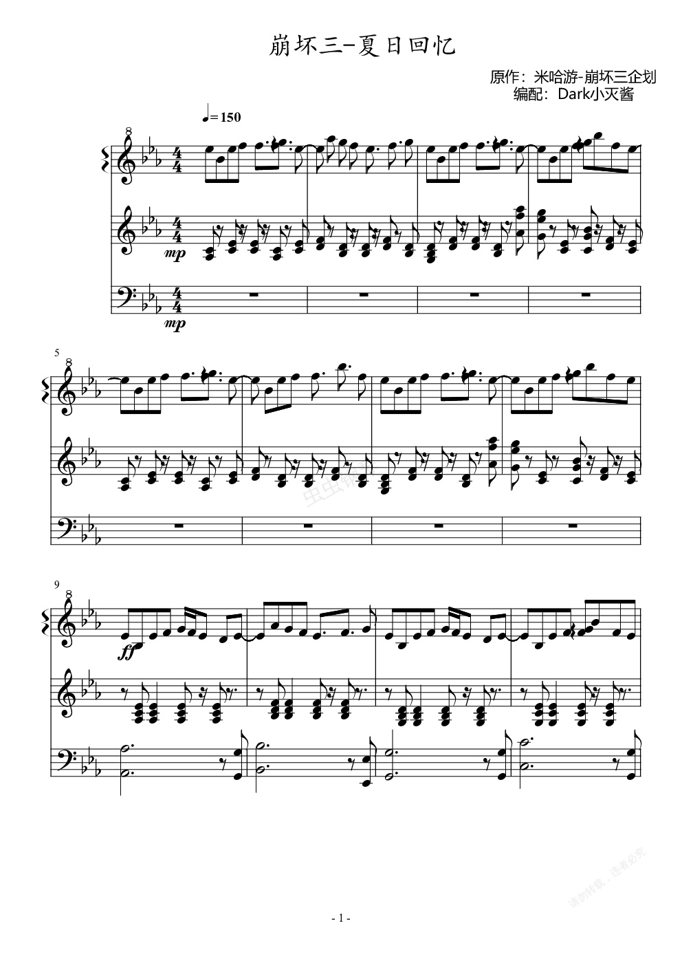 钢琴谱:崩坏三-夏日回忆(钢琴)